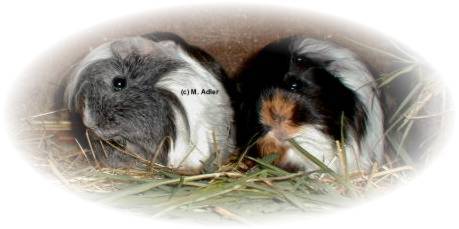 Der Verdacht einer Ohrentzündung liegt immer dann nahe, wenn das Tierchen plötzlich, wie aus heiterem Himmel, das Köpfchen nach einer Seite legt und sichtbare Orientierungsschwierigkeiten hat. Wie beim Menschen, liegt auch bei den Meerschweinchen das Gleichgewichtsorgan im Ohr. Hat es nun eine Ohrentzündung, dann bekommt es auch Gleichgewichtsstörungen. Dies kann sich insofern äußern, daß das Meerschweinchen zu taumeln anfängt, manchmal sogar hinfällt.Torticollis infolge der Geburt kommt vor allem bei Tierchen vor, deren Mütter für die 1. Geburt bereits zu alt (älter als 1 Jahr) oder deren Babys zu groß sind. Es handelt sich hierbei um eine Verkürzung des Nackenmuskels, was sich jedoch in den meisten Fällen nach kurzer Zeit von allein wieder gibt. Auch wenn dies mal nicht der Fall sein sollte, so sind die Tierchen in keiner Weise benachteiligt und werden genauso alt wie ein Tierchen ohne Torticollis. Mein ältestes Meerschweinchen mit Torticollis wurde 6,5 Jahre alt !
