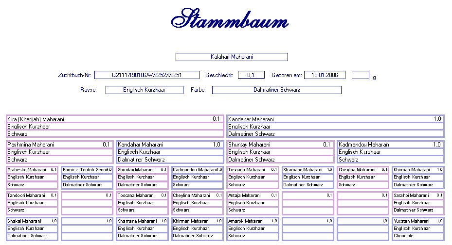 Kalahari "Maharani" Englisch Kurzhaar Dalmatiner Schwarz Geb. : 19.01.2006 Mutter : Kira (Kharlijah) "Maharani", Engl. Kurzhaar, Schwarz Vater : Kandahar "Maharani", Engl. Kurzhaar, Dalmatiner Schwarz TS am 23.04.2006 : SG mit 91,5 Punkten |