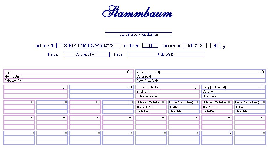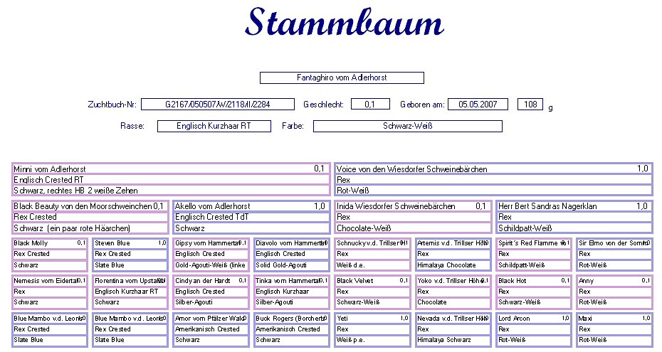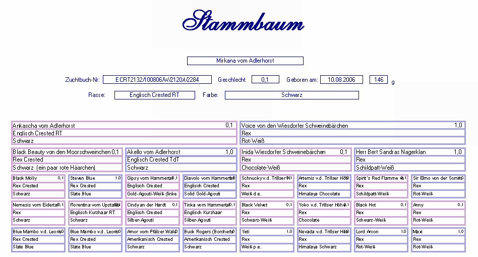 Schweinebärchen Rex Rot-Weiß Geb. : 03.12. 2005 Mutter : India v. d. Wiesd. Schweinebärchen, Rex, Chocolate-Weiß Vater : Herr Bert Sandra´s Nagerclan, Rex, Schildpatt-Weiß Stammbaum |