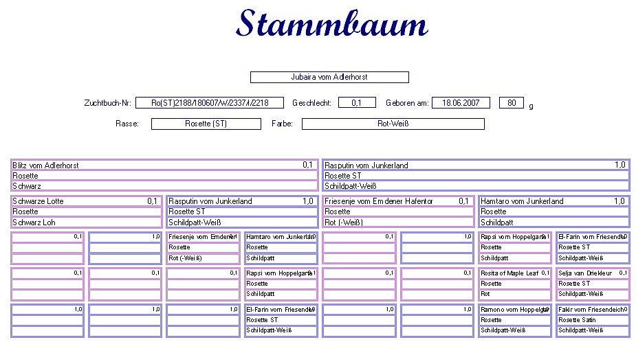 Jubaira v. Adlerhorst Rosette (ST) Rot-Weiß Geb. : 18.06.2007 Mutter : Blitz v. Adh., Rosette, Schwarz sp. Schildpatt-Weiß Vater : Rasputin v. Junkerland, Rosette ST, Schildpatt-Weiß |