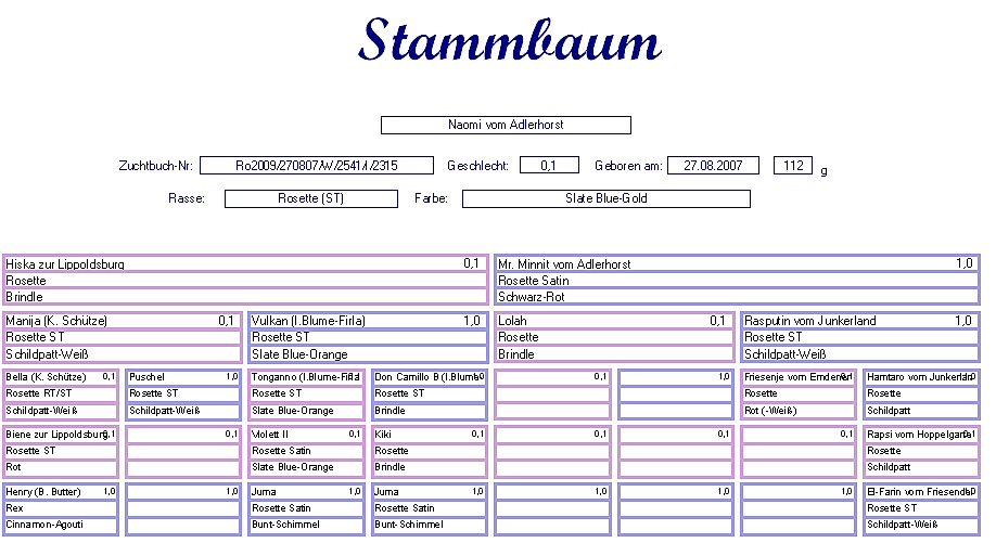 Naomi vom Adlerhorst --> in Aufzucht Rosette ST Slate Blue - Gold m. etw. Weiß Geb. : 27.08.2007 Mutter : Hiska z. Lippoldsburg, Rosette, Schildpatt Vater : Mr. Minnit v. Adh., Satin Rosette, Schildpatt |